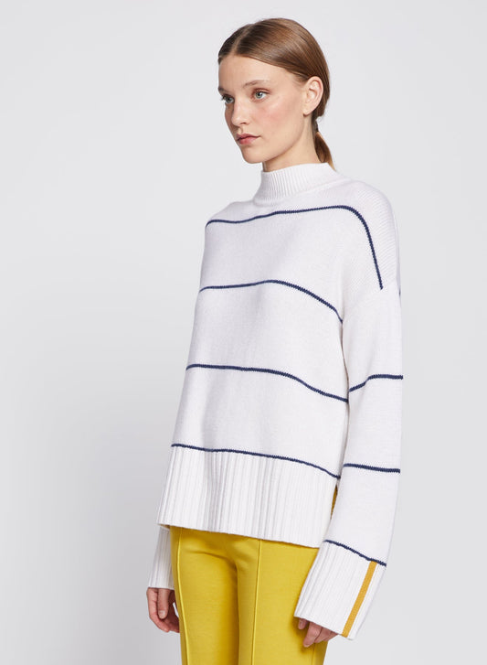 Striped Mock Neck Sweater - Cream