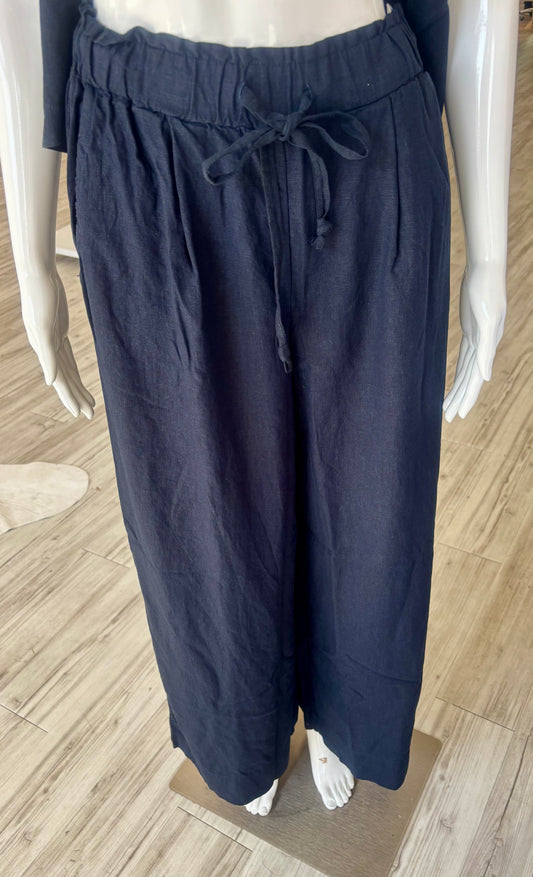 Linen Drawstring Trouser - New Navy