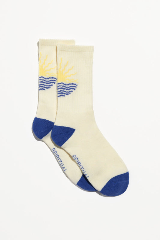 Sunset Stripe Crew Sock - CrystalBlue/MellowYellow